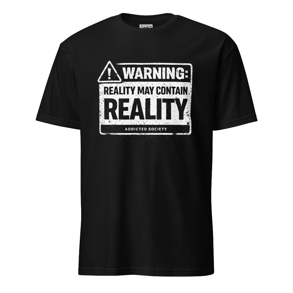 An unapologetically blunt Addicted Society design that turns existential disappointment into a wearable warning label. “Warning: Reality May Contain Reality” delivers dark humor, deadpan irony, and anti-normal energy in one clean visual hit. The distressed sign-inspired layout gives it a raw, slightly rebellious feel, perfect for anyone who sees modern life as equal parts absurd, repetitive, and mildly insulting. A strong statement piece for cynical minds, sarcastic souls, and lovers of uncomfortable truth.